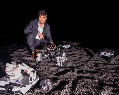 Design element with AI-powered machinery moving